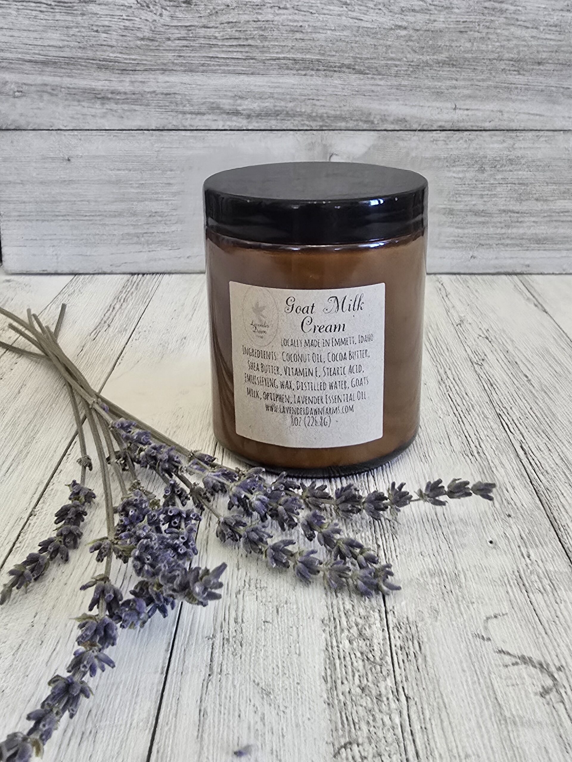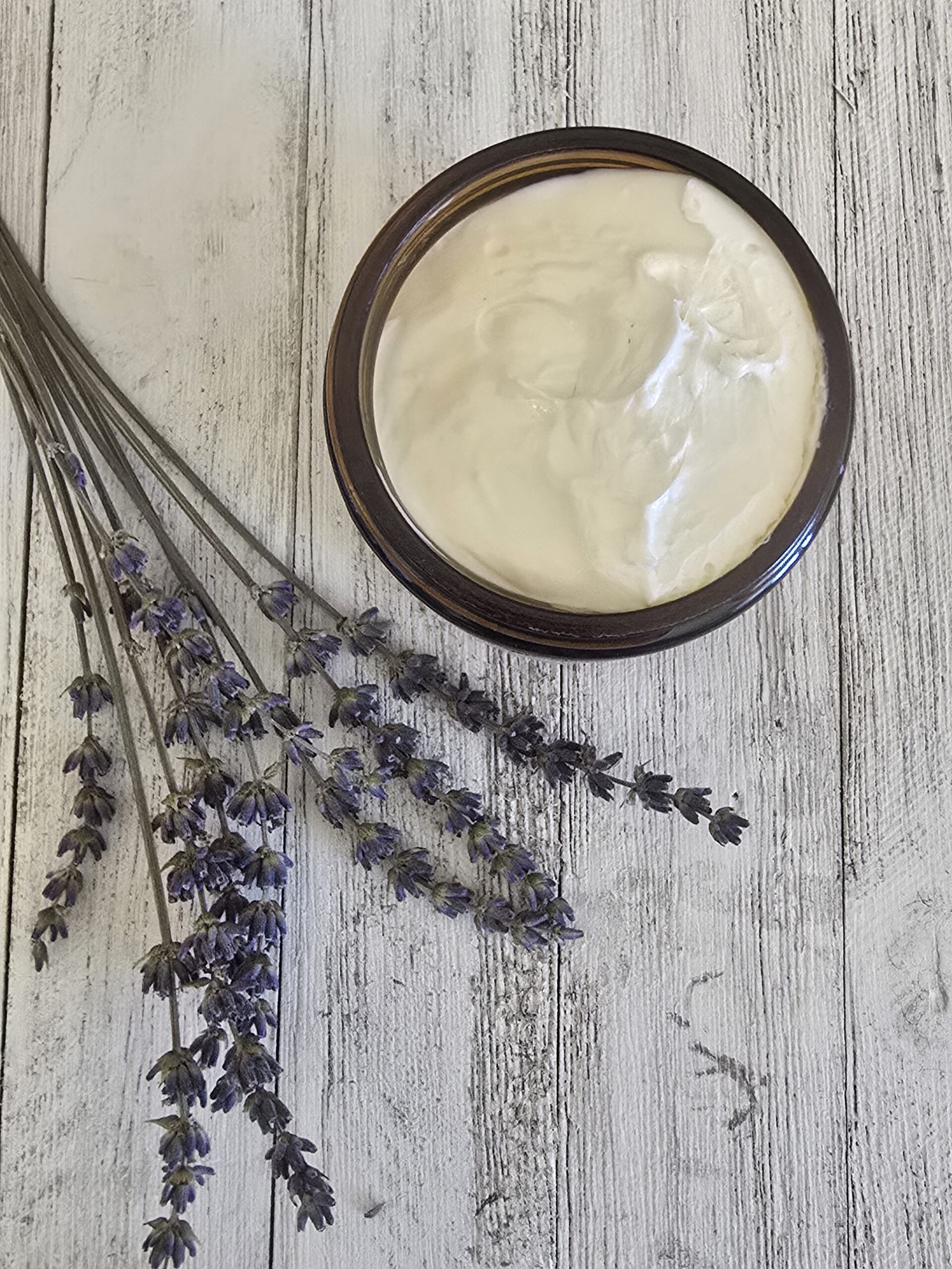Nourish your skin with our handcrafted lavender goat milk cream, made in small batches using fresh milk from our own hand-milked goats. Rich in natural fats and vitamins, this luxurious cream deeply hydrates and soothes dry or sensitive skin. Infused with pure lavender essential oil, it offers a calming scent that promotes relaxation while gently restoring your skin’s natural glow.